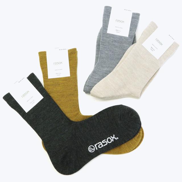 rasox/ラソックス/メリノ・ベーシッククルー/靴下/くつ下/ソックス/クルーソックス/クルー丈/ミドル丈/ウール/暖かい/耐久性/保温性/速乾性/防臭効果/保温/速乾/防臭/薄手/テーパー構造/オールシーズン/春/夏/秋/冬/おしゃれ/お洒落/シンプル/カジュアル/無地/L字型/L字型靴下/日本製/ギフト/プレゼント/ブランド/男女兼用/ユニセックス/メンズ/レディース