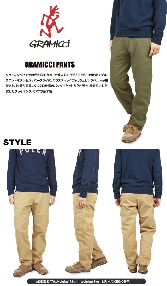 ゆったりとしたワタリにグラミチならではの細身の裾が特徴のシルエット。
