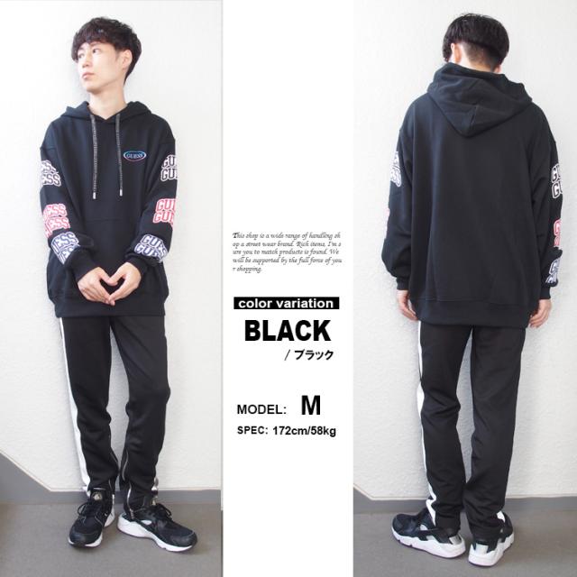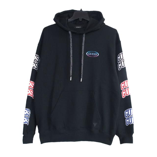 【guess パーカー】 GUESS ゲス パーカー スウェット プルオーバーワイドシルエット オーバーサイズ ドロップショルダー バック デニム ロゴ 裏毛 アメカジ メンズ レディース MM3K42MTSE