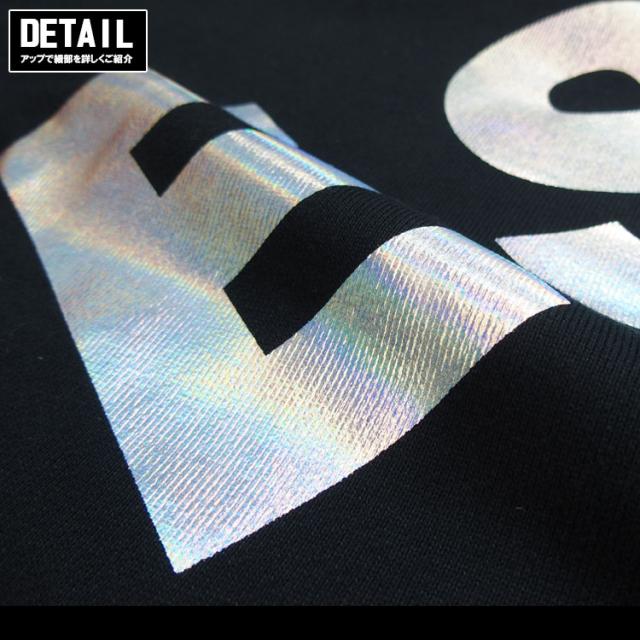リフレクト加工が施されたロゴが大きくプリントされた、遊び心満載な一着。