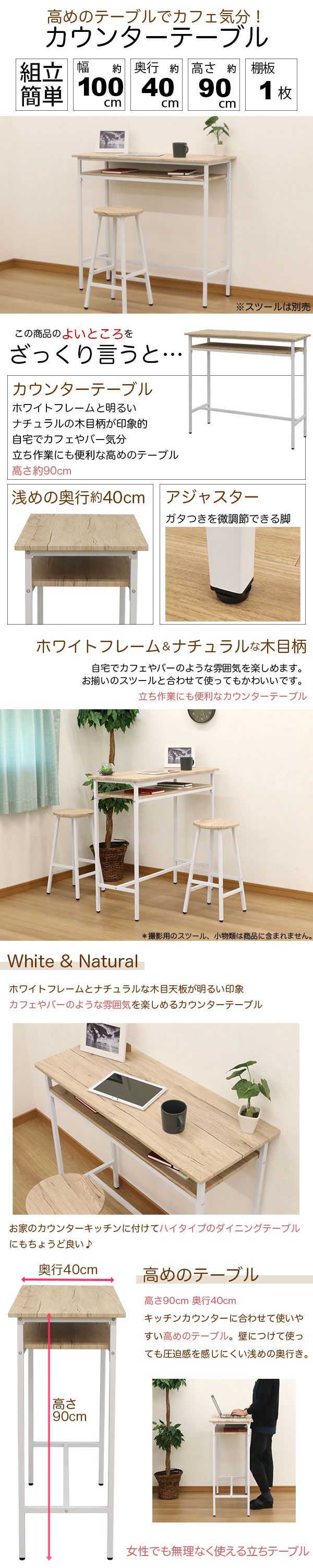 立ち作業にも便利♪ カウンターテーブル(単品) の説明