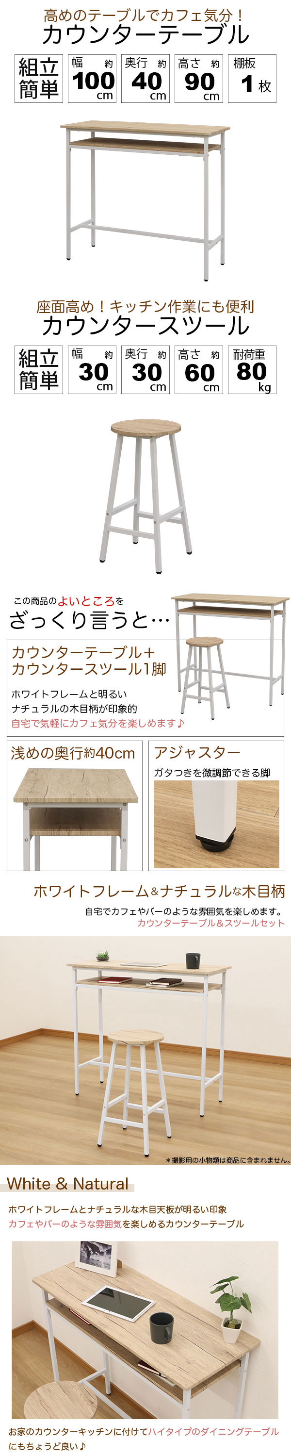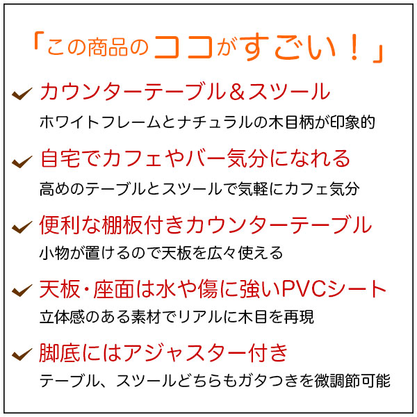 自宅でカフェやバー気分♪ カウンターテーブル+カウンタースツール1脚 の説明
