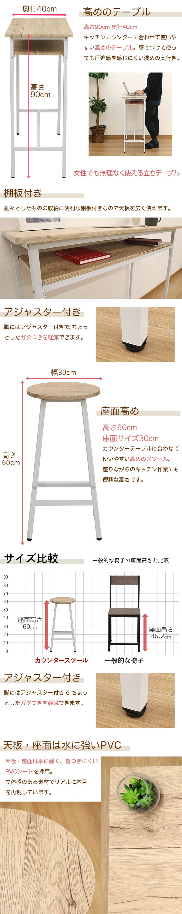 座面高め!キッチン作業にも便利
