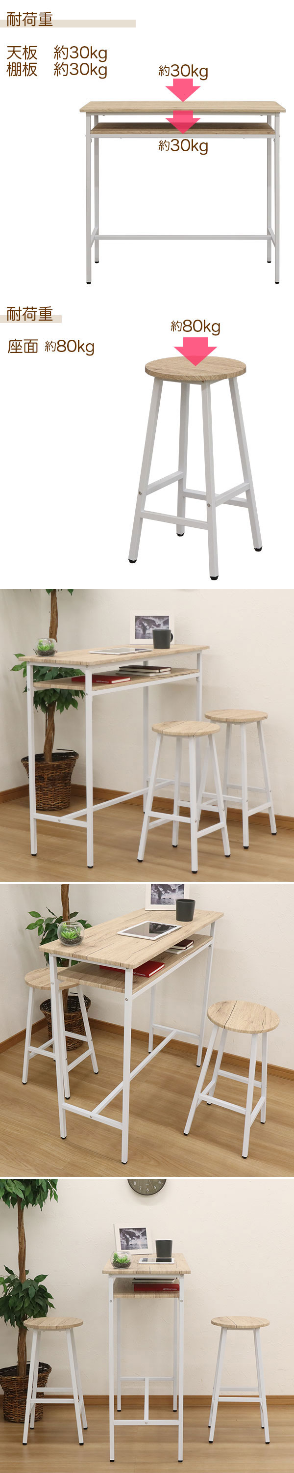 耐荷重(約):天板 30kg / 棚板 30kg