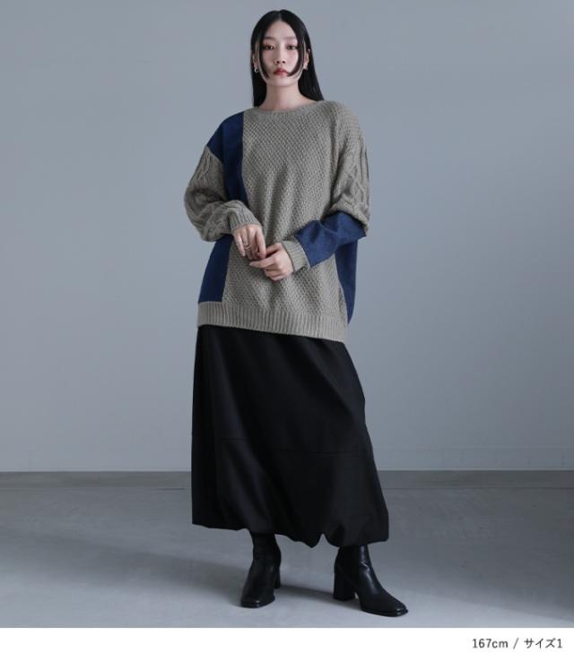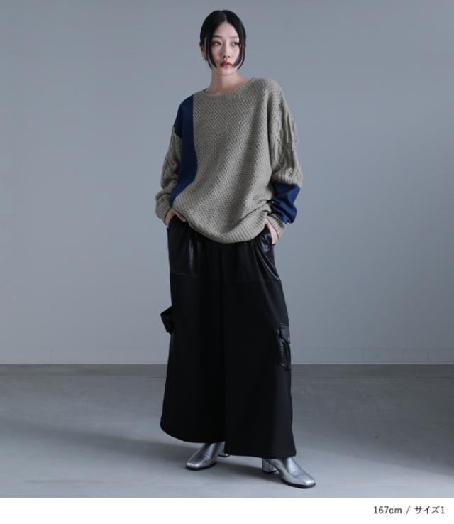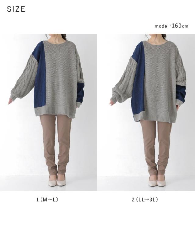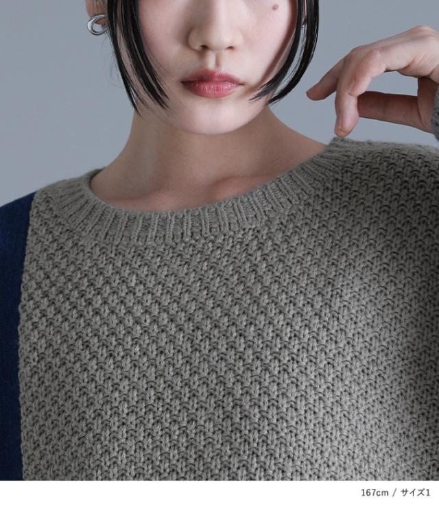 レディース ユニセックス 男女兼用 ペア お揃い トップス ニット セーター ローゲージ プルオーバー ざっくりニット 袖コンニット 鹿の子編み ケーブル編み デザインニット クルーネック 長袖 袖コンシャス ショート丈ニット ロング丈ニット ミディ丈 ミドル丈 チュニック丈 ドロップショルダー ビッグシルエット オーバーサイズ 切り替え アシンメトリー アシメ 無地 デニム 異素材MIX おうちで洗える 女子会 カジュアル お出掛け 旅行 通学 お買い物 大人女子 大人可愛い お洒落可愛い モード ニュアンス ラフ かっこいい Mサイズ Lサイズ LLサイズ 3Lサイズ ぽっちゃり 体型カバー 大きいサイズ 10代 20代 30代 40代 50代 60代 kOhAKU コハク 紺 ネイビー グレー 灰色 ニュアンスグレー バイカラー 【トップス】[ID]tik0424
