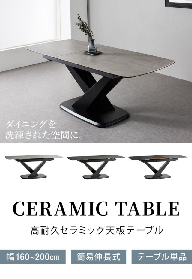 セラミック ダイニングテーブル 単品 伸縮 幅160~幅200 4人掛け 6人掛け 石目調 ウォールナット 伸縮テーブル 伸長式 ダイニング 耐水 耐熱 白 鏡面 傷がつきにくい(代引不可)【送料無料】
