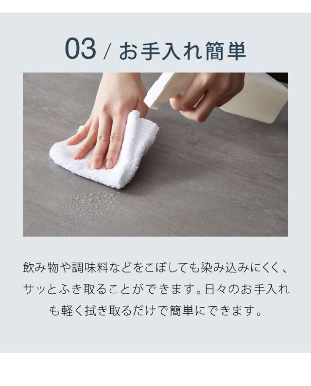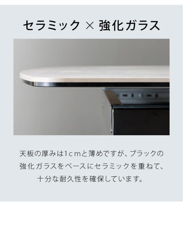 セラミック天板トップ、耐熱・防汚・キズに強くお手入れラクラク。