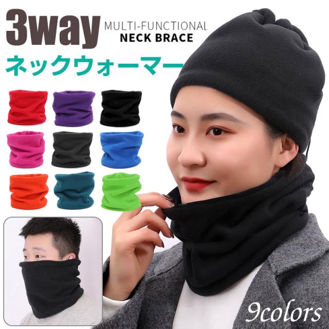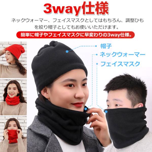 3way ネックウォーマー フェイスマスク 帽子 多機能 防寒 暖かい リバーシブル フリース ネコポス送料無料 ポイント消化