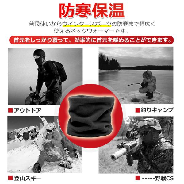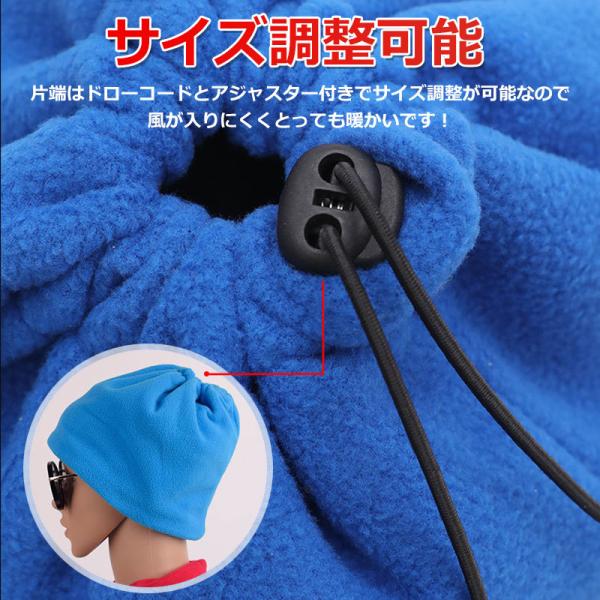 首元をしっかり覆って、効率的に首元を暖めることができます。普段使いからウインタースポーツの防寒まで幅広く使えるネックウォーマーです。片端はドローコードとアジャスター付きでサイズ調整が可能なので風が入りにくくとっても暖かいです!簡単に帽子やフェイスマスクに早変わりの3way仕様。肌触りの良いソフトフリース素材を使用して、締め付け感がなく、程よいフィット感で圧迫感がなく快適な付け心地です。軽いのにしっかり保温性に優れ、寒さから首を守ります。ネックウォーマー、フェイスマスクとしてはもちろん、調整ひもを絞り帽子としてもお使いいただけます。表裏の両面でお使い頂けるリバーシブル仕様。2層構造にすることで保温性もアップします! ※サイズ表記は目安です。若干の誤差がある場合がございます。