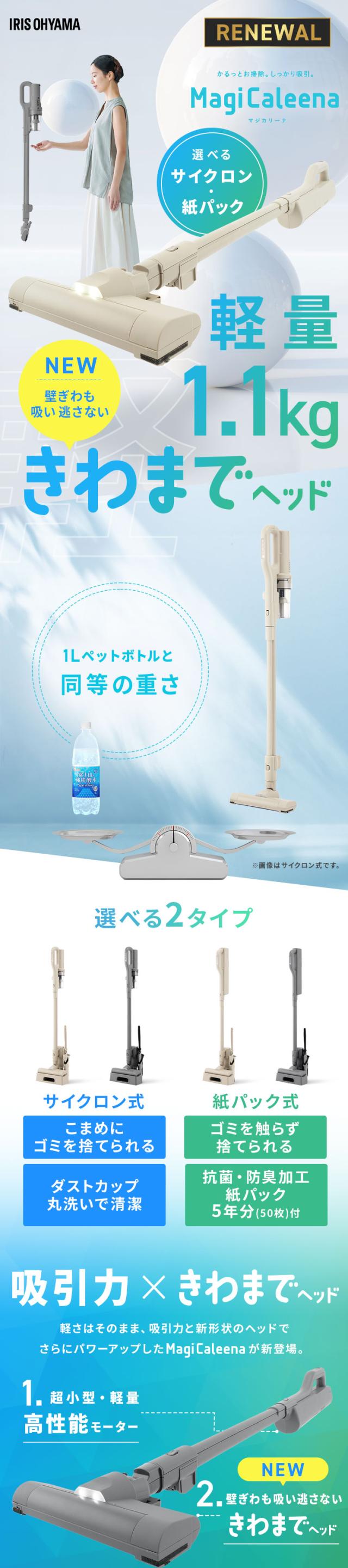 (検索用:掃除機・コードレス・軽量・強力吸引・きわまでヘッド・アイリスオーヤマ・マジカリーナ・サイクロン・紙パック式・紙パック・ハンディ・アタッチメント・充電スタンド・スティック掃除機・クリーナー・MagiCaleena・4967576785136・4967576785143・4967576789936・4967576789943・アイリスオーヤマ)