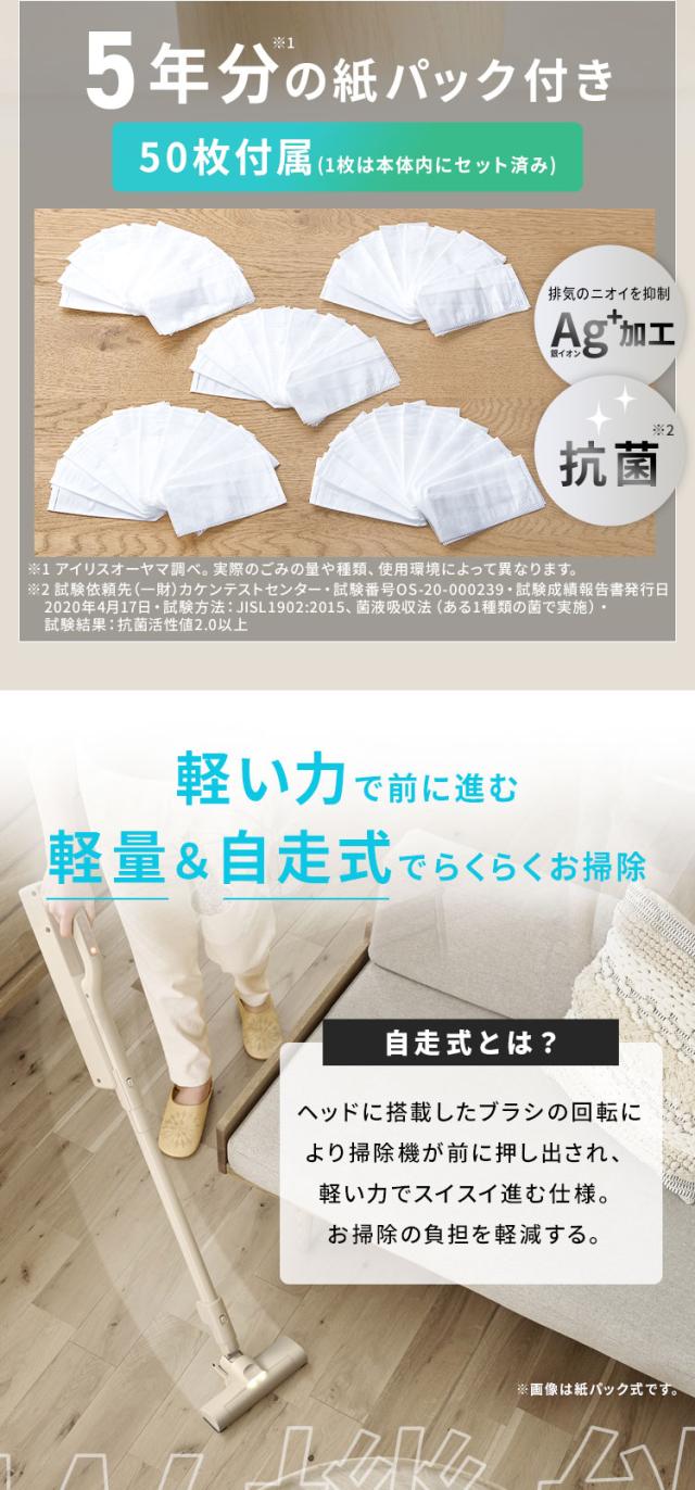専用の紙パックが50枚(※1枚は本体にセット済み)付属します。