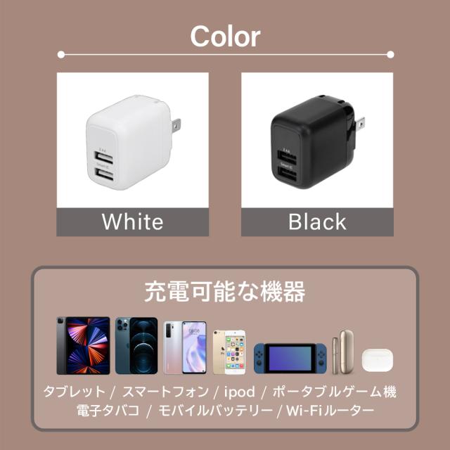 AC充電器 USB Type-A 2ポート 充電ケーブル 2m Type-A to Lightningケーブル付属 Apple認証品