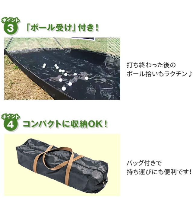 衝撃吸収力に優れたネットは、アプローチショットからアイアンショット、ウッドショットに対応。広い間口が相まって、ビシバシ気持ちよく打ち込めます。使わない時はコンパクトに収納できて便利!