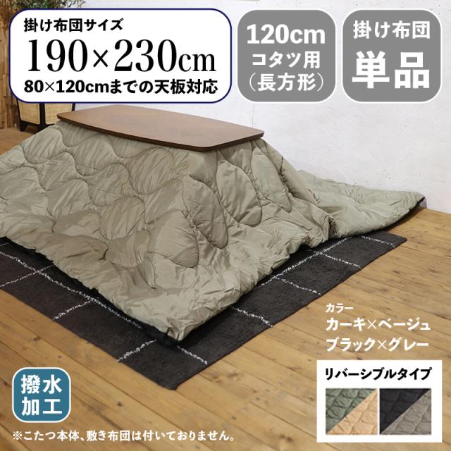 【掛け布団単品】MAKF 撥水加工 薄掛け こたつ布団 ブラック×グレー/全2色 リバーシブル仕様 丸洗いOK 【120cm長方形こたつ用 】