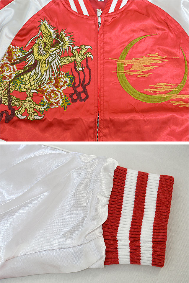 カジュアルなポリエステル生地を使用し、気軽にお楽しみ頂くことの出来るスカジャンを製作しました。
