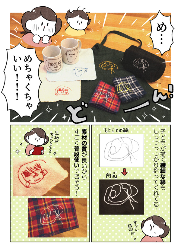 子どもの書いた絵とメッセージを刺繍にしたミニタオルハンカチ