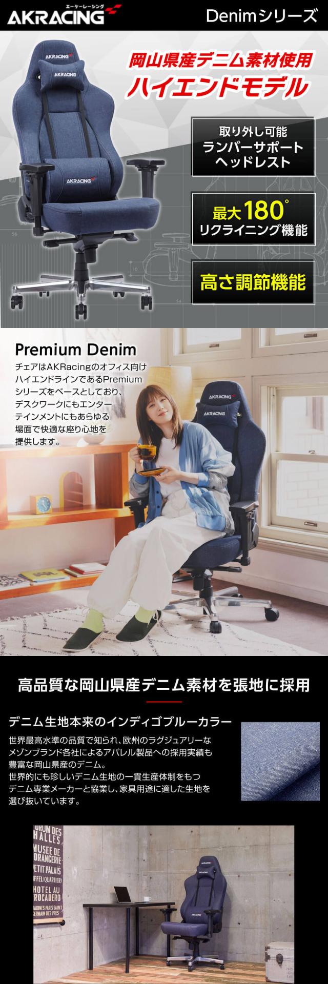 AKRacing ゲーミングチェア オフィスチェア デニム PREMIUM-DENIM ハイエンドモデル エーケーレーシング 正規販売店