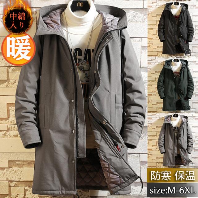 中綿ジャケット メンズ 中綿コート ロング丈 中綿ジャケット フード付き ゆったり 大きいサイズ アウター 体型カバー 防寒 防風