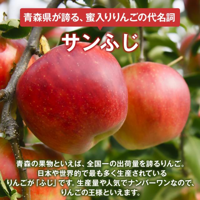 青森の果物といえば、全国一の出荷量を誇るりんご。気候・風土を生かして生産している美味しいりんごです。青森県が誇る、蜜入りりんごの代名詞です。日本や世界的にも最も多く生産されているりんごが「ふじ」です。 生産量や人気でナンバーワンなので、りんごの王様といえます。サンふじは甘みが強く、酸味もあり、とても食べやすいりんごで、味がとっても濃いのも魅力的の一つ。 サンふじは太陽の「サン」と品種名の「ふじ」 太陽の「サン」と言うのは、太陽の光をたくさん浴て育ったりんごのことで、りんごには袋をかけて栽培する有袋栽培と袋をかけないで栽培する無袋栽培があります。 袋をかけずに育てたりんごには「太陽いっぱい浴びました!」という『サン』をつけて区別しています。 袋をかけないりんごは太陽の恵みをたくさん浴びて育ちます。 太陽の光をたくさん浴びたりんごはとっても甘く美味しいんです!