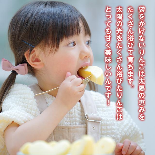 サンふじは甘みが強く、酸味もあり、とても食べやすいりんごで、味がとっても濃いのも魅力的の一つ。 サンふじは太陽の「サン」と品種名の「ふじ」 太陽の「サン」と言うのは、太陽の光をたくさん浴て育ったりんごのことで、りんごには袋をかけて栽培する有袋栽培と袋をかけないで栽培する無袋栽培があります。 袋をかけずに育てたりんごには「太陽いっぱい浴びました!」という『サン』をつけて区別しています。 袋をかけないりんごは太陽の恵みをたくさん浴びて育ちます。 太陽の光をたくさん浴びたりんごはとっても甘く美味しいんです!