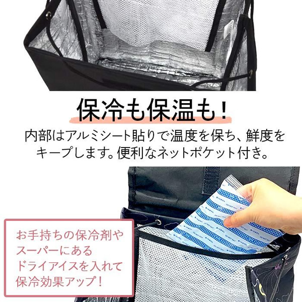 ・ バッグの内側はアルミシート貼りで保温、保冷効果あり!