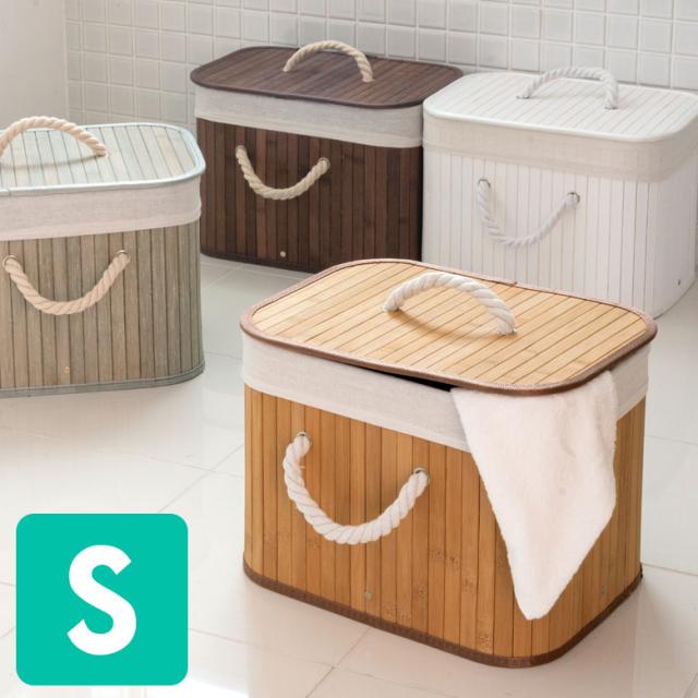 ロープハンドルがおしゃれな スクエア型 バンブーバスケット ショートタイプ 収納ボックス ランドリーバスケット おしゃれ 収納かご カラーボックス バスケット 内布付き かわいい 片付け 目隠し ふた付き 蓋付き 竹 バンブー 組み立て [66]