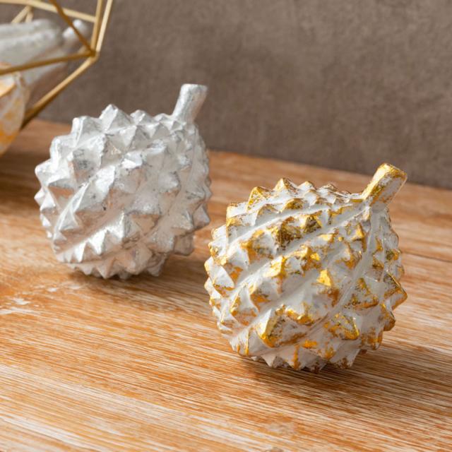 オブジェ ウッド 木製 木彫り 天然木 ドリアン 野菜 シルバー 銀 ゴールド 金 W 10cm D 8.5cm H 8.5cm 置物 インドネシア バリ ハロウィン クリスマス ディスプレイ オーナメント インテリア 店舗 リゾート 北欧 南国 西海岸 サーフ 海 [13904]