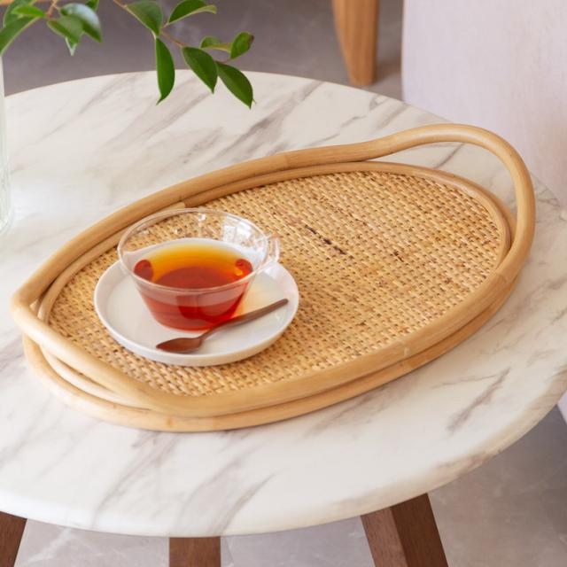 お盆 トレー Mサイズ 大きい オーバル ラタン 籐 約 W 39.5cm D 28cm H 6cm ハンドル付き 持ち手 ナチュラル 楕円 長手盆 サービストレイ ランチトレー トレイ ランチョンマット ランチトレー かわいい おしゃれ 北欧 西海岸風 ビーチ 韓国 韓国インテリア [13962-m]