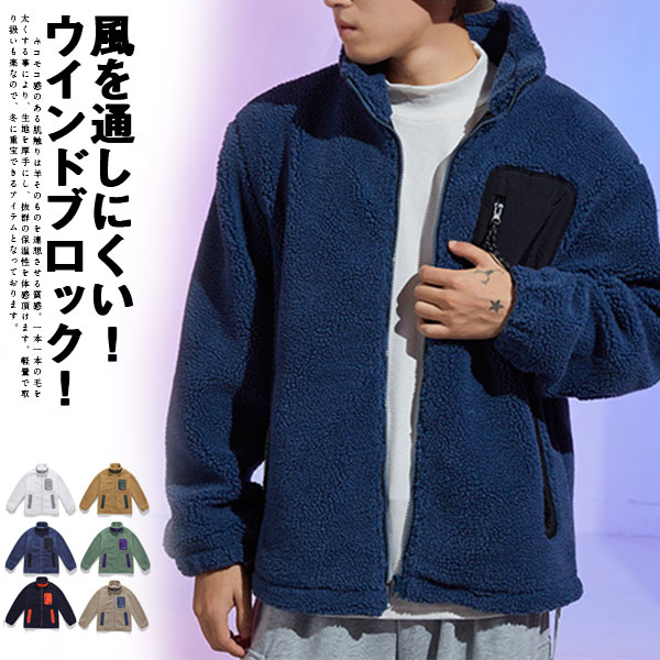 ポイント超超祭 フリースジャケット メンズ シープボア ブルゾン スタンドネック アウター フルジップアップ ボアフリース コート ボアジャケット アウトドア