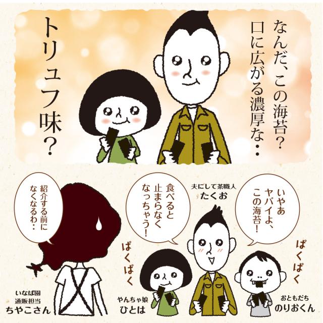 - 小川千奈さんがご紹介しているのを見て購入しました。こんな美味しい海苔は初めてです。贈り物にも良いですね。またリピします。