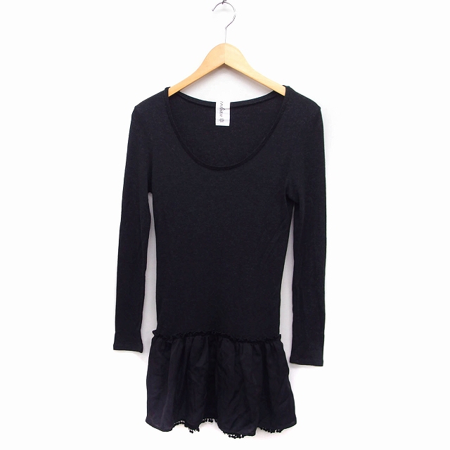 【中古】アイズビットガーディアン ISBIT GUARDIAN ニット ワンピース フレア 異素材切替 ひざ丈 Uネック ウール混