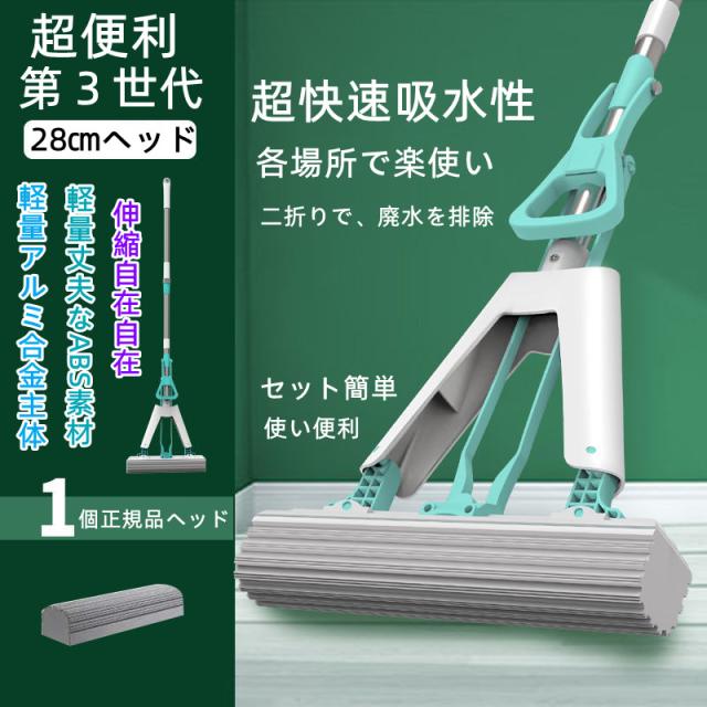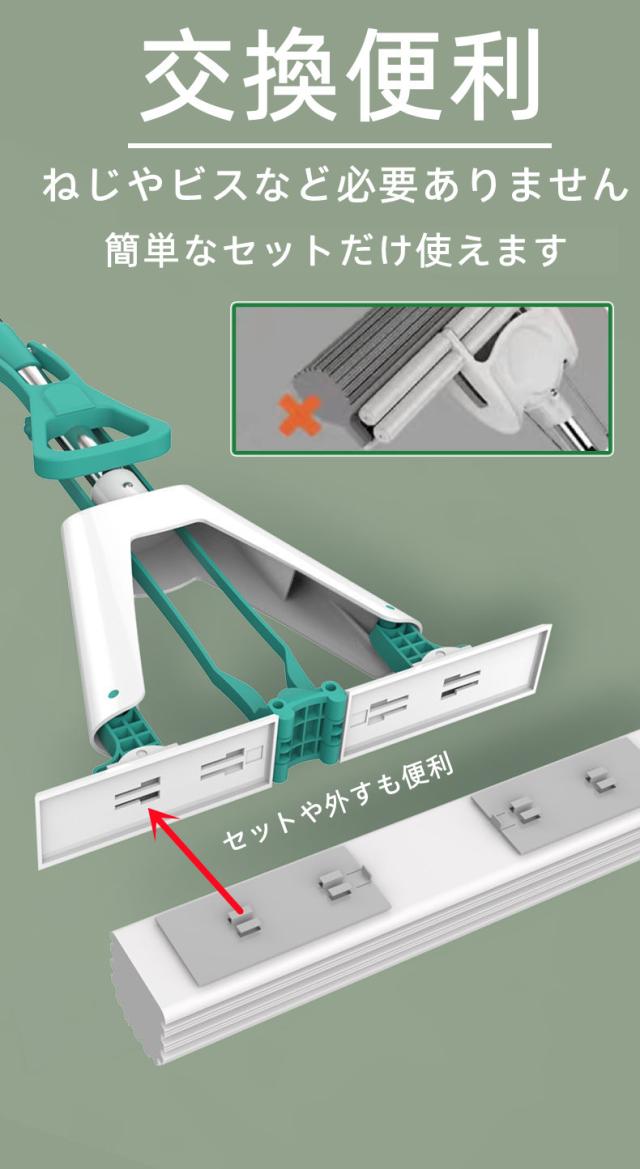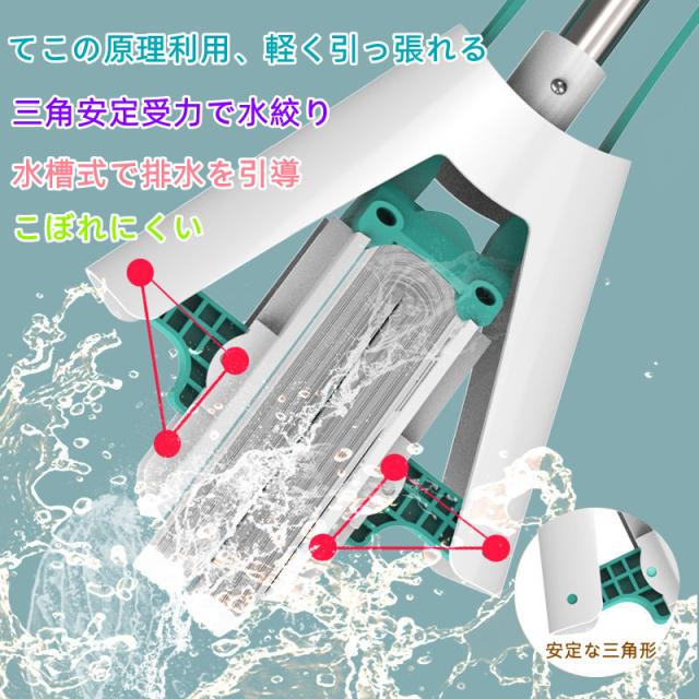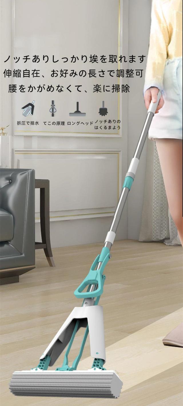 欧米家庭大人気 フロアモップ 手濡らさないモップ 伸縮自在 水拭きモップ 床掃除 吸水力 埃やごみ取りすっきり バスルーム キッチン 純正ヘッド1個 天井 壁 窓結露 ガラス 海外向け輸出