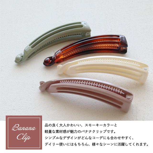 品の良く大人かわいい、スモーキーカラーと軽量な素材感が魅力のバナナクリップです。
