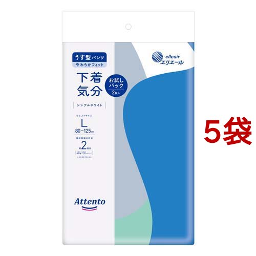 アテント うす型パンツ 下着気分 シンプルホワイト L お試しパック(2枚入*5袋セット)[大人紙おむつ パンツ]
