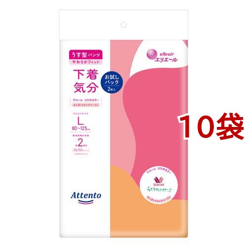 アテント うす型パンツ 下着気分 エレガントピンクべージュ L お試しパック(2枚入*10袋セット)[大人紙おむつ パンツ]