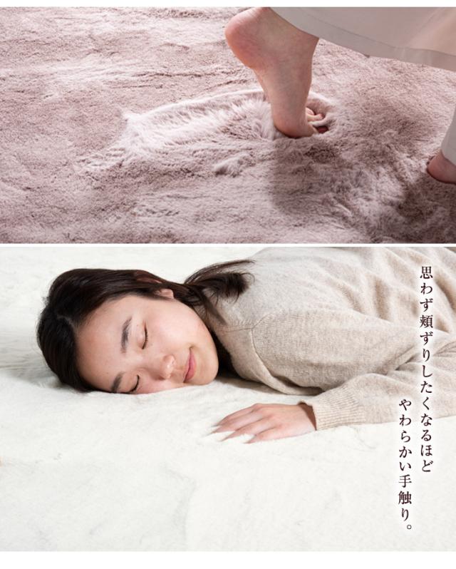 ふわふわ ラビットファータッチラグ ラビットファータッチ フェイクファー 140 × 200 cm 姫系 かわいい オシャレ 床暖房対応 ホットカーペット対応 秋 冬 リビング 寝室 客室 送料無料【商品番号:87250096】