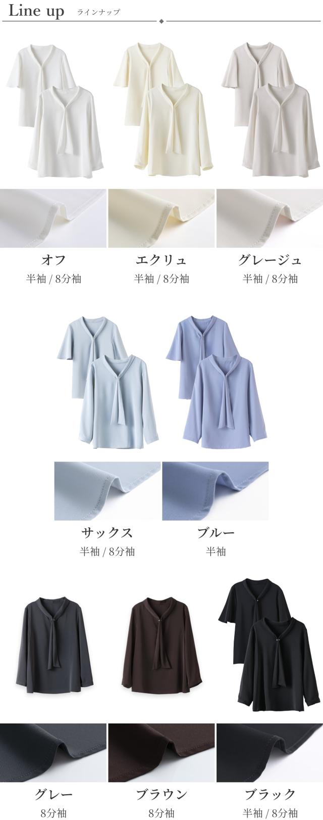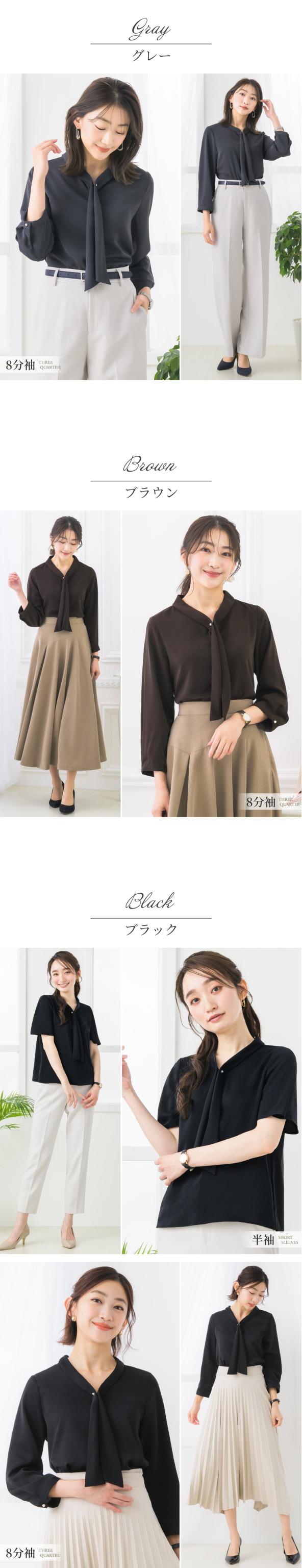 ブラウス レディース 一枚着 オフィス パール ボウタイ スーツ インナー トップス 半袖 8分袖 透けにくい 大きいサイズ 小さいサイズ 通勤服 大人 ビジネス 夏 秋 冬 ブラック グレージュ メール便送料無料 1/1
