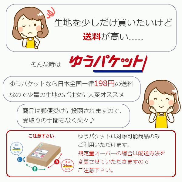 ・柄物の生地について、柄全体が入るような見本や特定部分の見本のご用意はきませんのでご了承ください。