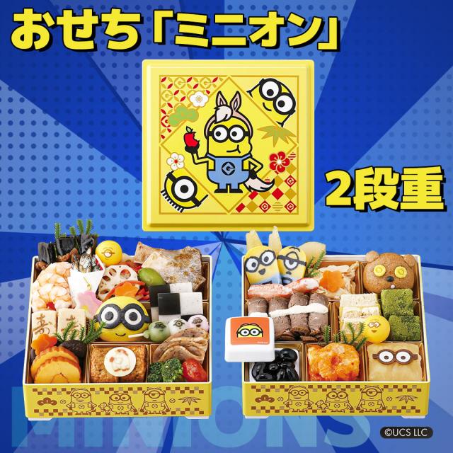 全世界で大ヒットしたアニメーション映画『怪盗グルー』シリーズのキャラクター”ミニオン”を盛り込んだおせちです。本格的な和のおせちにハチャメチャなミニオンたちがいっぱい!