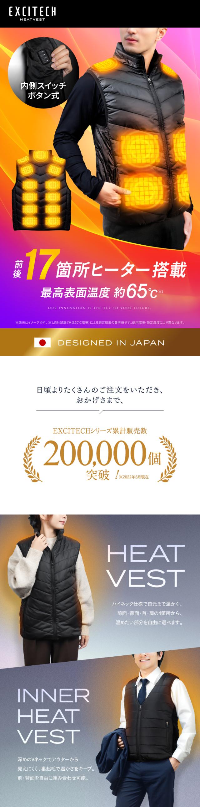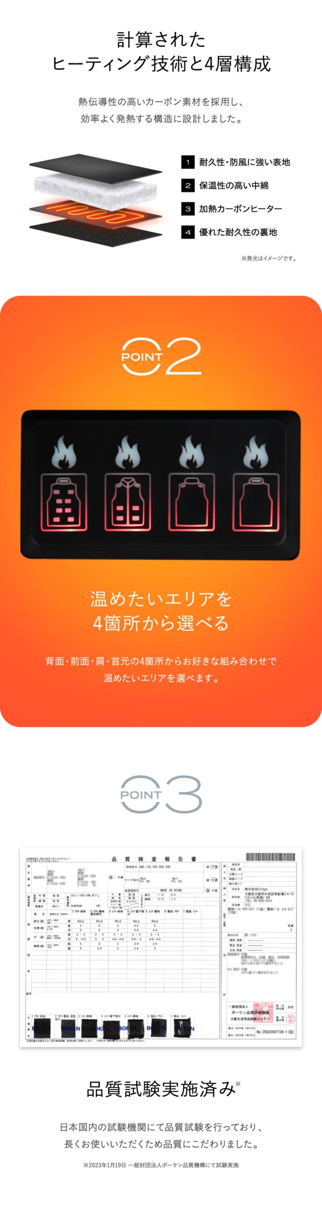 【前後17箇所加熱ベスト/3段階温度調整可能】