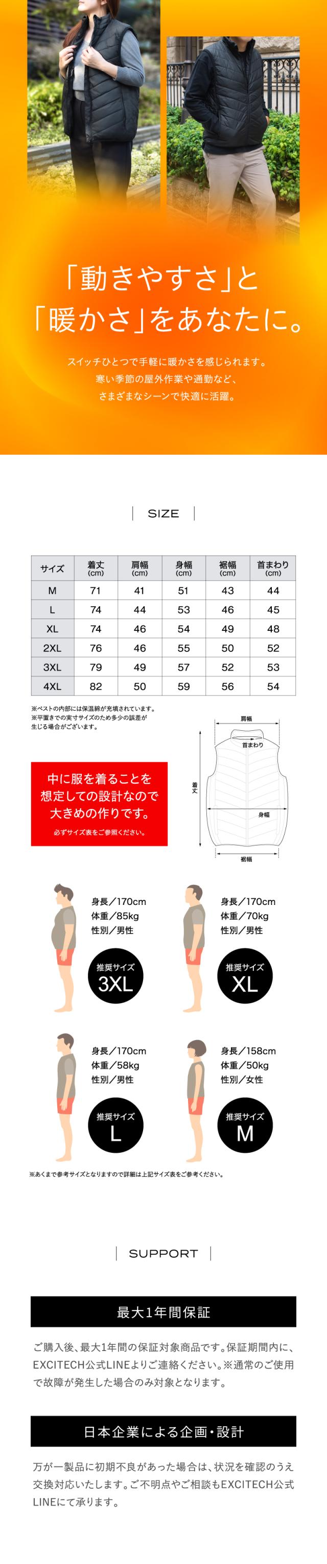 ※Excitech Heat Vestに対応していないバッテリーによる故障は保証期間内でも対象外です。
