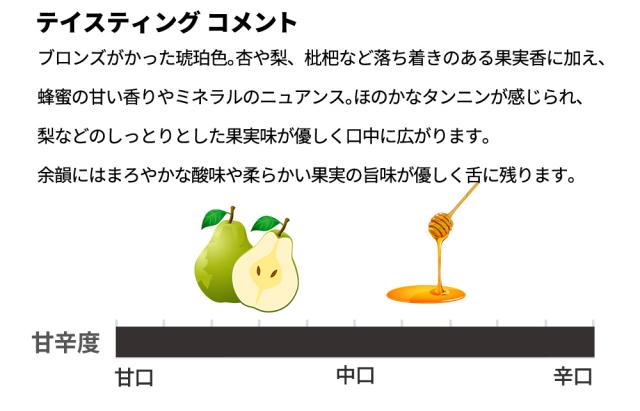 ![]() ■ぶどう品種:リボッラ/マルヴァジア/フリウラーノ3品種 ■発酵・熟成:自然酵母のみ/野生酵母のみを使い発酵/約1ヶ月マセラシオン/スラヴォニアンオーク樽(15-25hl)内シュールリーにて30ヶ月熟成 フリウリの自然派パラスコスがリボッラ、マルヴァジア、フリウラーノ3品種で造るオレンジワイン!まろやかな酸としっとりした果実の旨みが広がる優しい味わいのオレンジワイン! 造り手はガンベロ・ロッソ。スローワイン誌には『環境への尊重、完璧なマセラシオンなどがパラスコスの特徴です。出来上がるワインはフレッシュで香り高く、酸が綺麗です。数年前から息子のアレクシスが栽培、醸造共に手伝っている。』 スロヴェニアの国境にほど近いサン・フロリアーノ村に位置する生産者のパラスコス!自然酵母のみでの発酵とSO2の不使用、または必要最小限の使用(15mg/L程度)での醸造を行います! 醸造中、瓶詰め時ともにSO2不使用!ノンフィルターにて瓶詰めで造られます! |