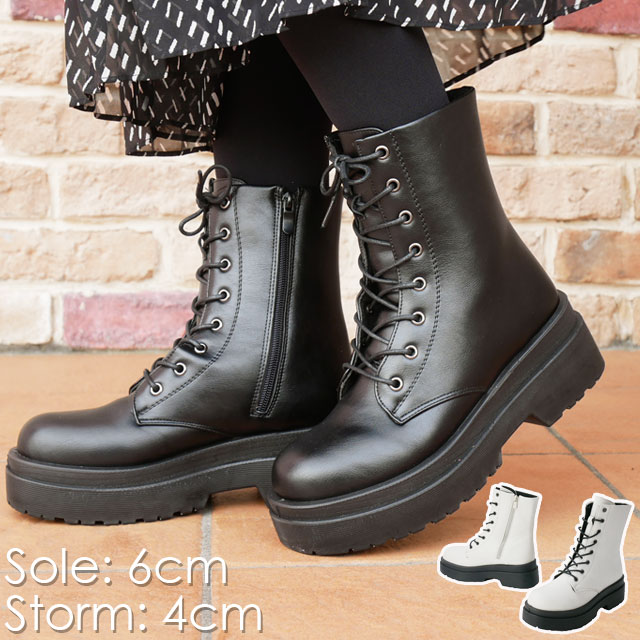 送料無料 レディース FW 秋冬 新作 冬新作 ミドルブーツ レースアップブーツ 人気 流行 定番 2022 2023 2696 厚底ブーツ 編み上げブーツ チャンキー 靴 ブラック アイボリー カジュアルシューズ 歩きやすいサイドジップ 約6cmヒール