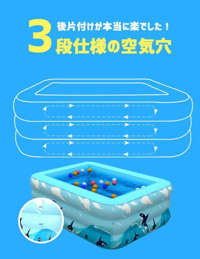 *暑い夏には欠かせないアイテムが登場!!この150×105×40cm家庭用プールの大きいサイズは大人2人と子供1人が対応できます。プールの高さが40cmもあるので、身体全体しっかりと水につかれます。暑さを感じず、涼しく大型ビニールプールで水遊びすることができます。