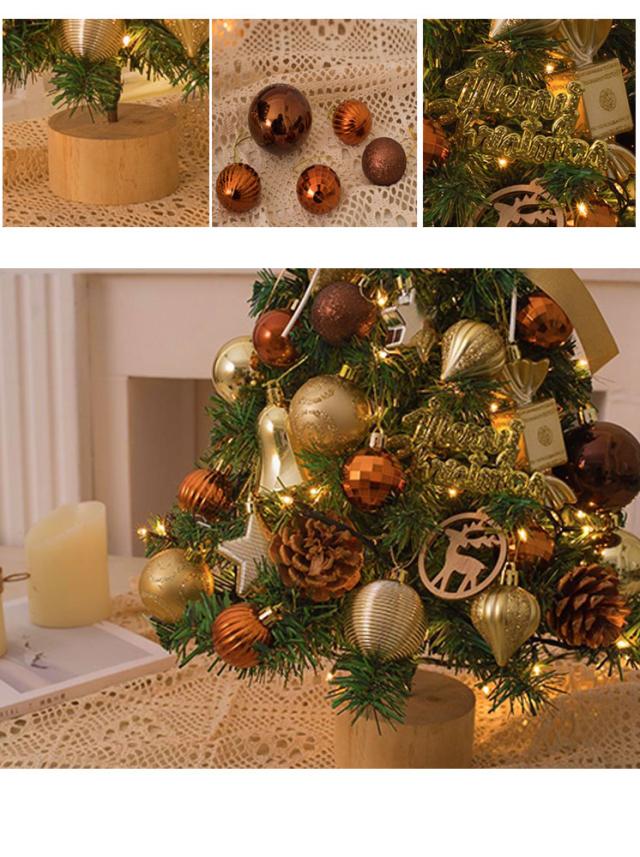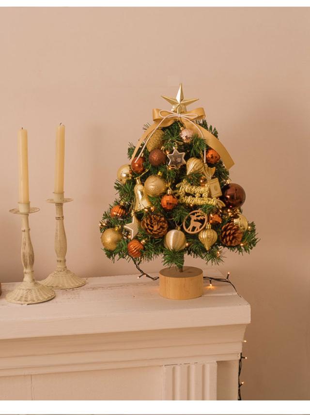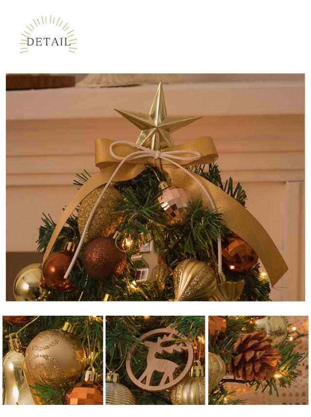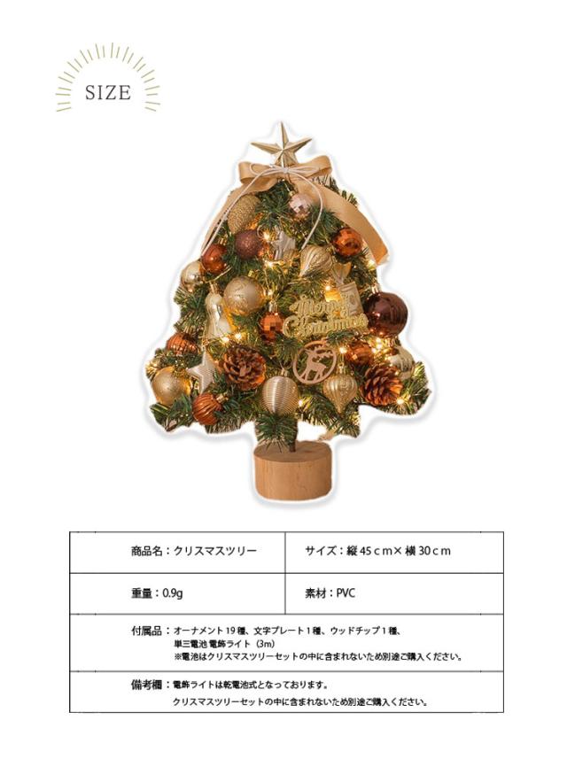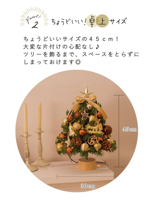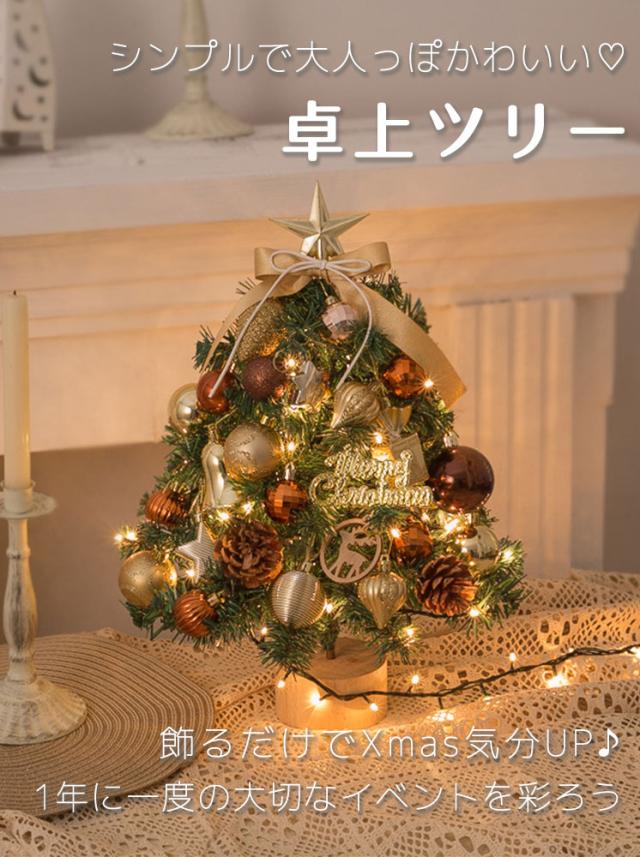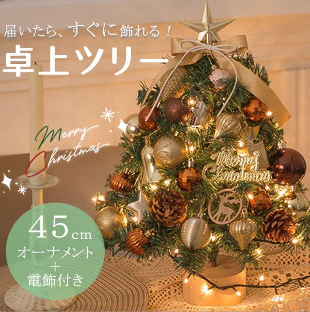 クリスマスツリー 卓上 led オーナメントセット 45cm おしゃれ 北欧 オーナメント トップスター ボール リボン ledライト 飾り付き ミニ 小さめ イルミネーション オブジェ 玄関 飾り 装飾 簡単 コンパクト ライト ナチュラル キラキラ 光る ゴールド