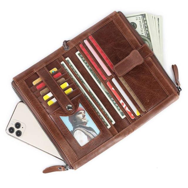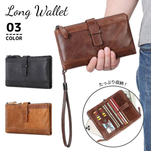 長財布 ロングウォレット 財布 メンズ レディース 男女兼用 カード入れ お札 シンプル 無地 レザー 大人 カジュアル 大容量 収納 磁気防止 ファスナー ストラップ 盗難防止 プレゼント ギフト 仕分け スキミング防止 スマホ フォーマル