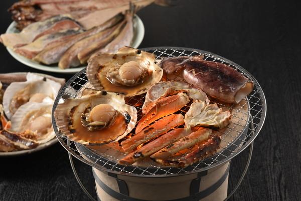 「ずわいがに」や「たらばがに」などの蟹をはじめ、「帆立貝」に「鮭のちゃんちゃん焼き」、「真いか」に「一夜干し」などの海の幸を「焼き物」でお楽しみください。
