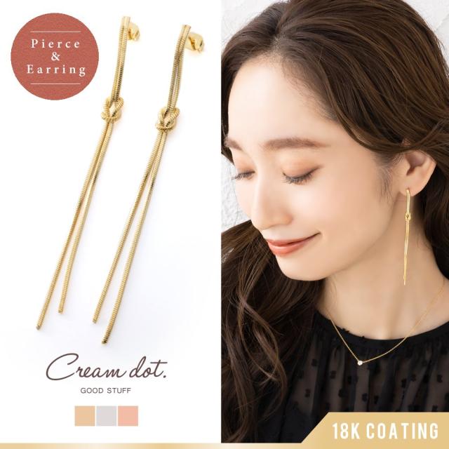 【金属アレルギー対応】 選べる ピアス イヤリング ニッケルフリー 18kコーティング レディース ネジ式 ノット 結び目 ロングピアス スネークチェーン 大人 ゴールド シルバー