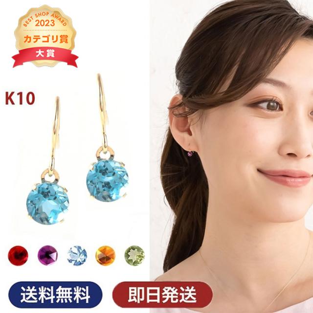 ピアス レディース 11月 誕生石 ブルートパーズ 誕生石 カラーストーン ガーネット シトリン ペリドット フック K10 10金 フックピアス ゴールド バースデー 誕生石 天然石 色石 金属アレルギー クリスマス プレゼント 女性 誕生日 誕生日
