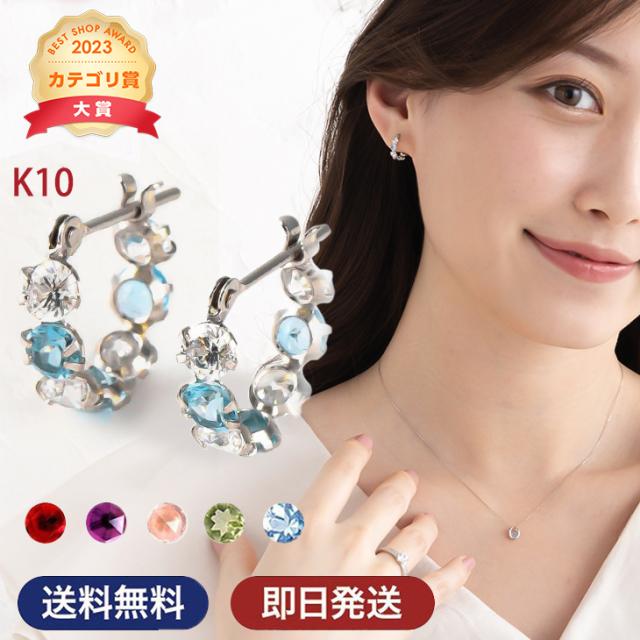 ピアス レディース 金属アレルギー 11月 誕生石 ブルートパーズ 誕生石 天然石 カラーストーン ブルートパーズ ムーンストーン ガーネット ペリドットフープ K10 K10WG 10金 フープピアス ホワイトゴールド バースデー 色石 女性 誕生日 クリスマス プレゼント アクセサリー